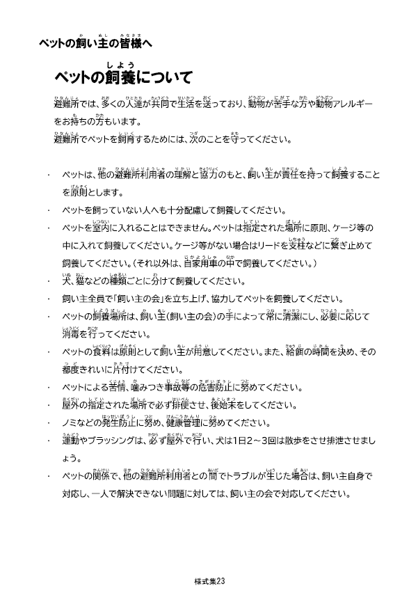 「刈谷市 避難所運営マニュアル(様式集)」から、ペット関連の書類を抜粋します。