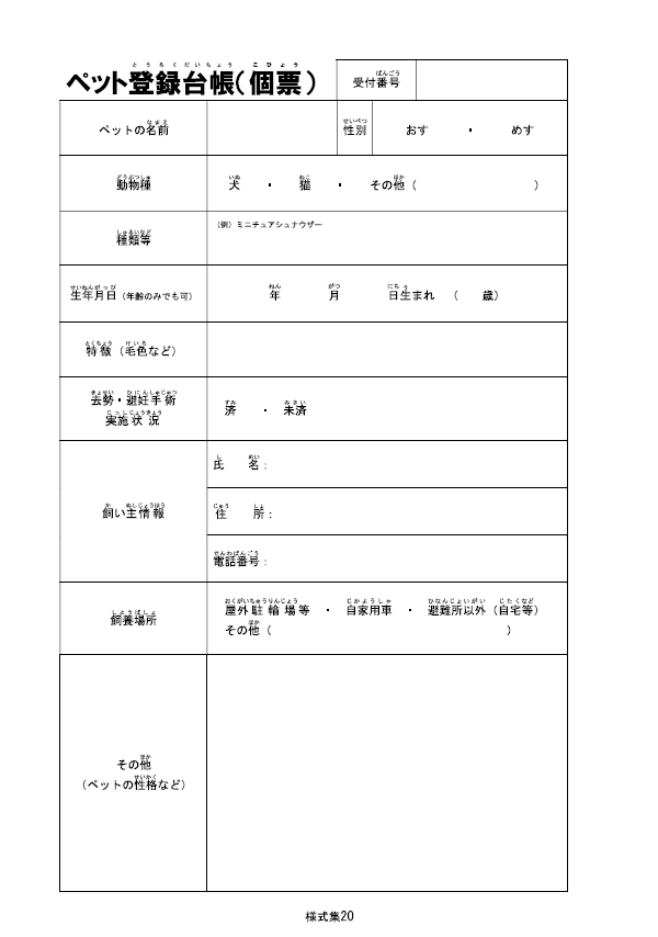 「ペット登録台帳(個票)」については、平常時に予め記載しておくことをお薦めします。