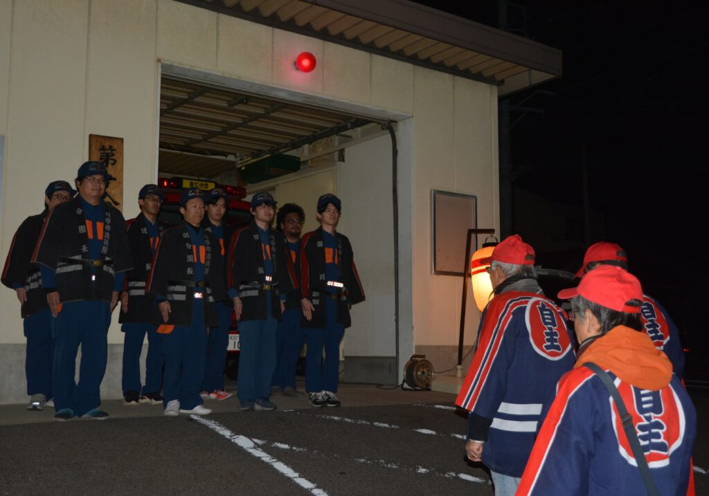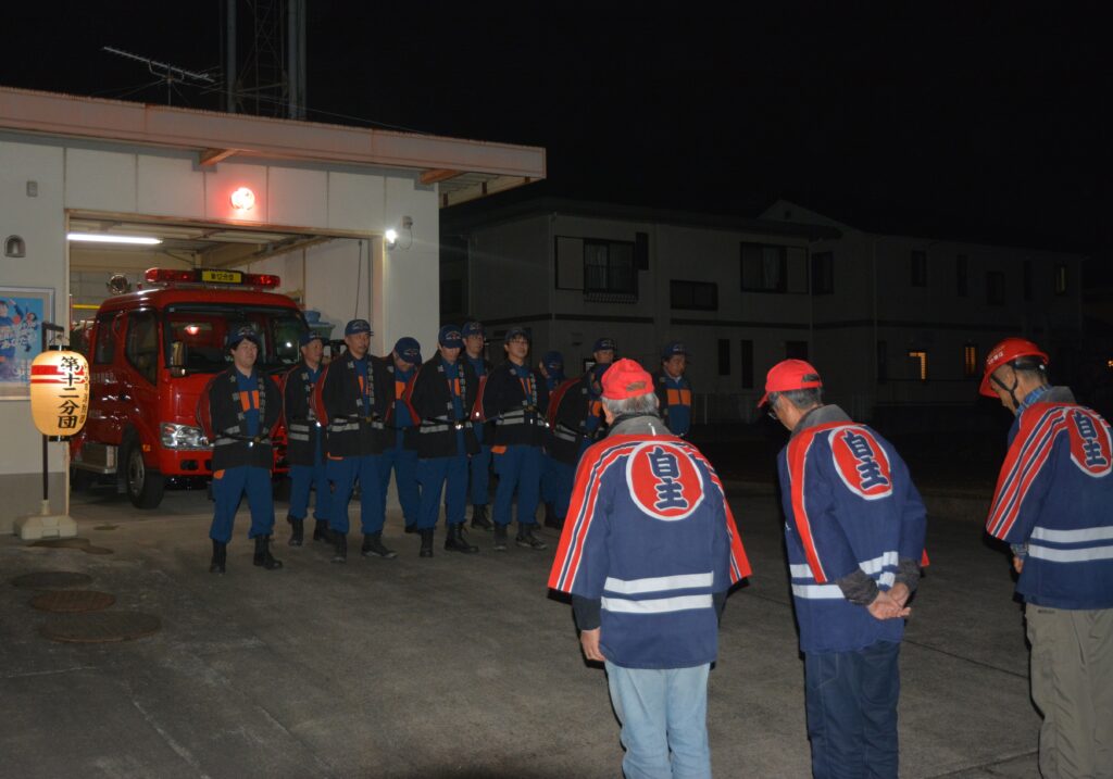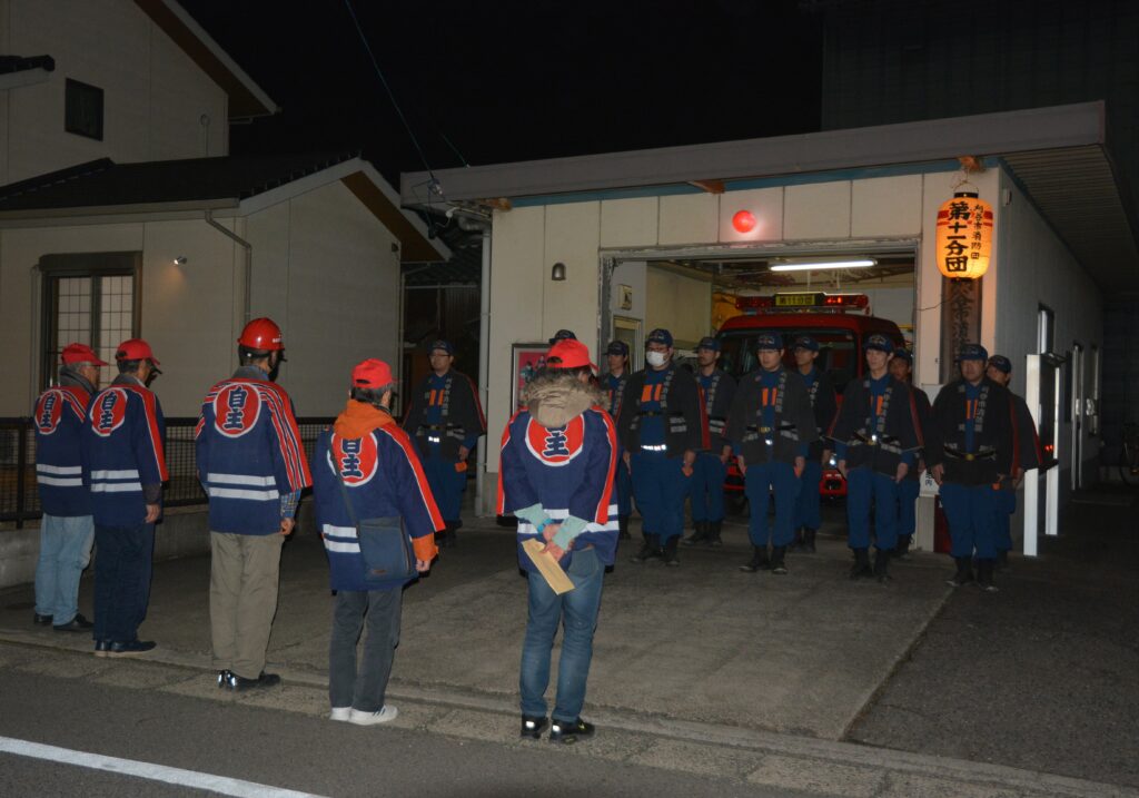 2025年12月29日、年末夜間特別警戒にあたる消防団第10・11・12分団を、地区六役にて激励訪問しました。
